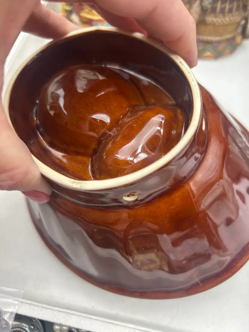 Details • Material: Ceramic • Color: Brown / caramel glaze • Condition: Good vintage condition with light wear consistent with age • No visible major chips or cracks (based on photos) • Unmarked (common for vintage molds)